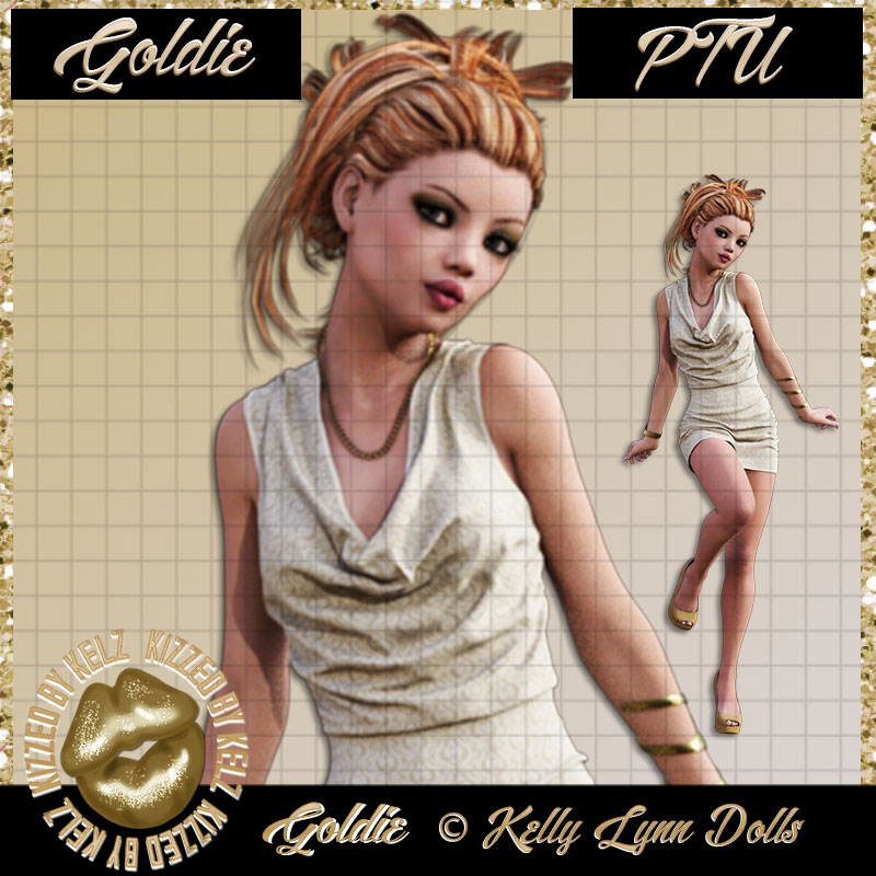 Meet Goldie! My new sweet petite golden girl is ready to bring her unique style to your personal use creations. PSD & PNG file included. Kizzed By Kelz store exclusive tube.